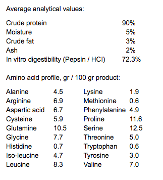 - Έχει υψηλή περιεκτικότητα σε υδατοδιαλυτά αμινοξέα όπως αργινίνη, προλίνη, γλυκίνη και ασπαρτικό οξύ.